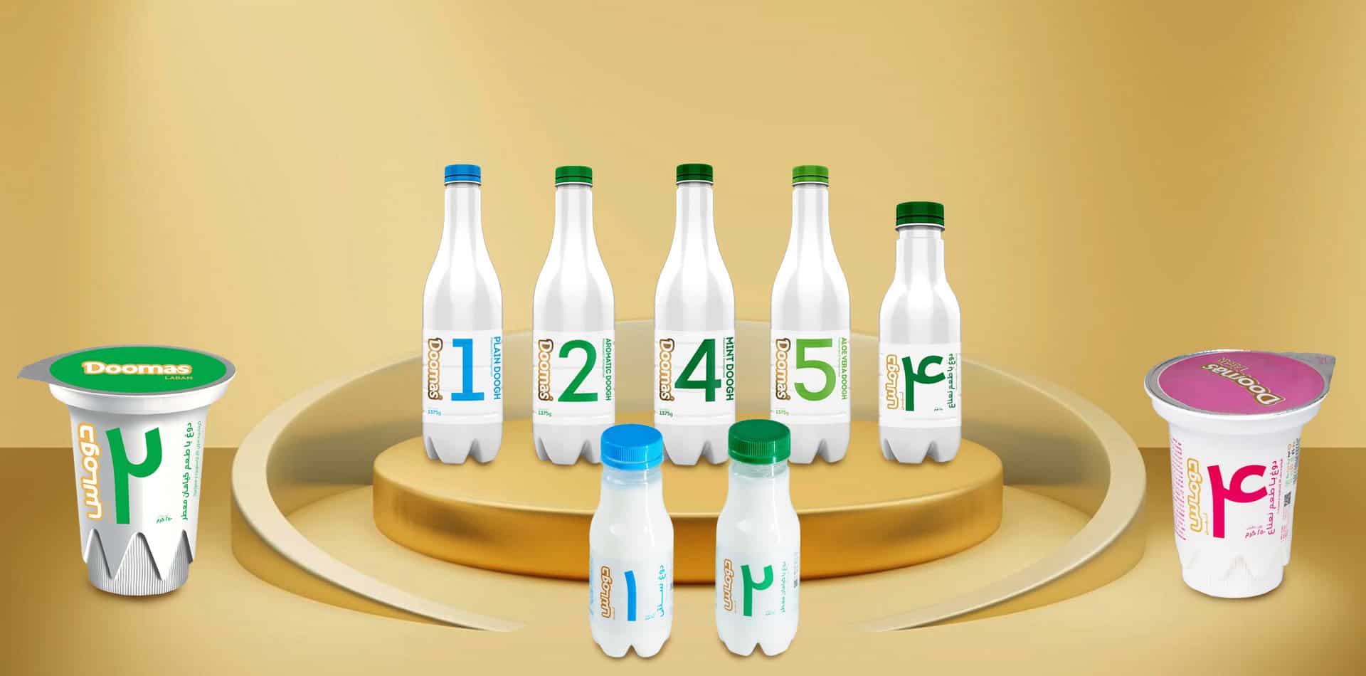انواع دوغ های دوماس شامل دوغ سنتی و در طعم های گیاهان معطر، نعنا و آلوئه ورا است.